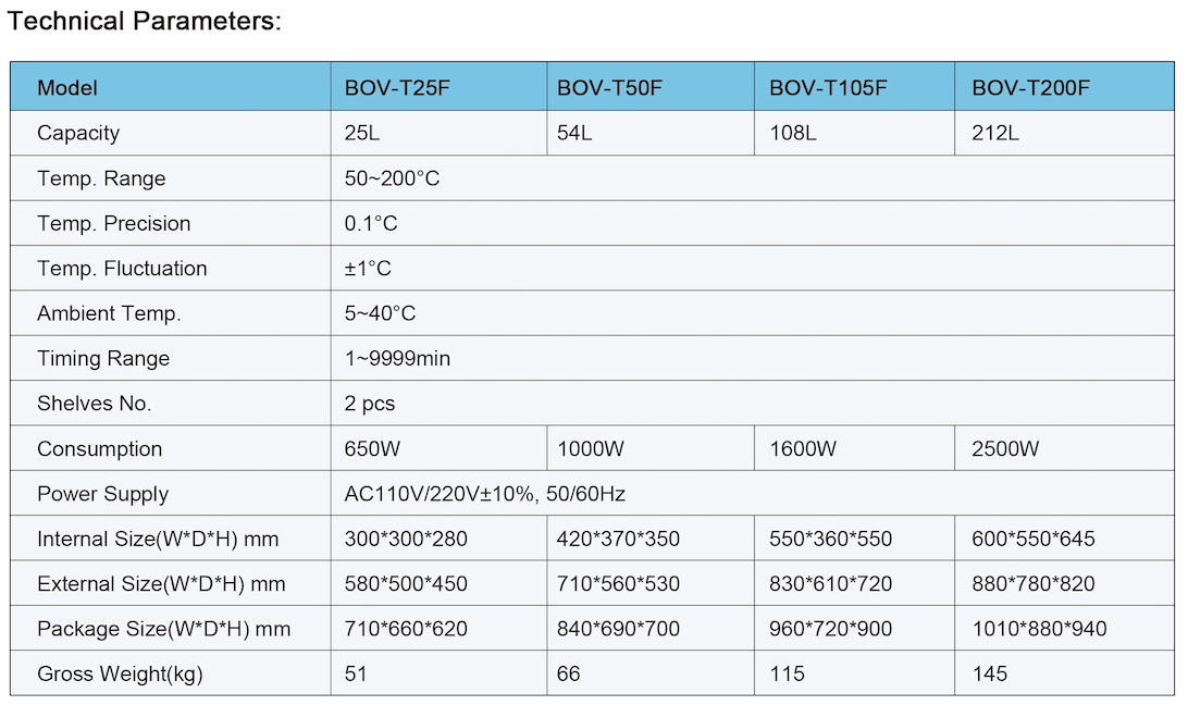 Forced Air Drying Oven BOV-T25F BOV-T50F BOV-T105F BOV-T200F