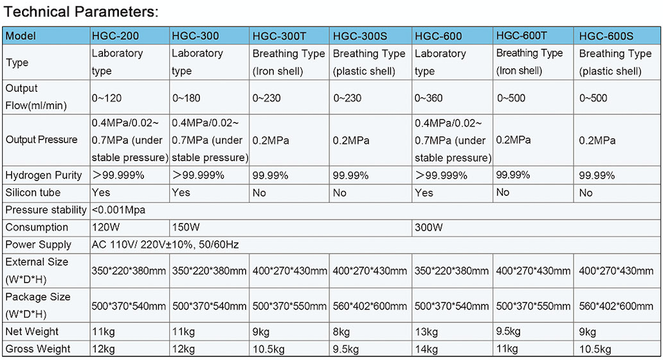 - High purity hydrogen (99.999%)(for Laboratory type).