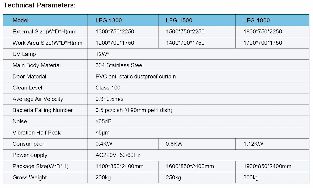 • Main body: 304 stainless steel. Soft wall: PVC anti-static dust-proof curtain. Door can be also made by Glass(optional)