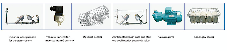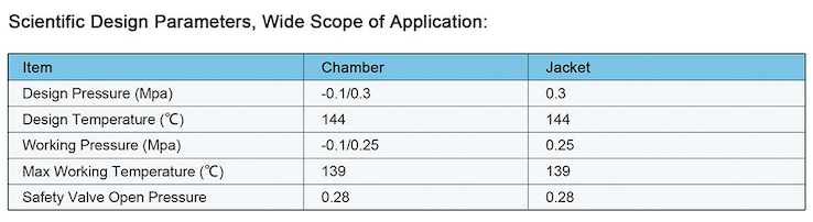 - Precise pressure detecting and control: Intelligent pressure transmitters, Wika(Germany), ensure steam pressure detecting and control both in Chamber and jacket.