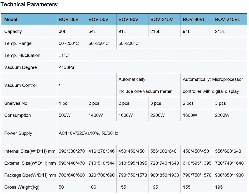 • The vacuum pump is standard accessory(for BOV-90V/BOV-215V/ BOV-90VL/BOV-215VL)